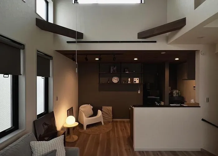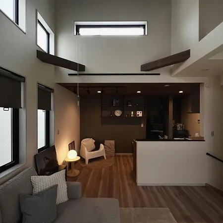 Shibuya House W Rooftop, 6Min To Station, Skyline View includes a living room and a fully equipped kitchen with air conditioning and a washing machine for utmost comfort.